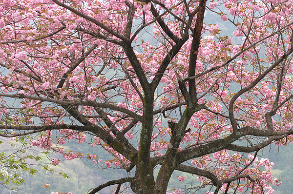 奈良井の桜は今が見ごろという良い時期に訪れることができたが、霧雨に霞んで見えた。